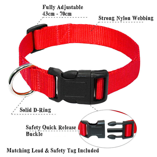 Classic Stylish Webbing Collar & Lead Set With Free Safety Tag