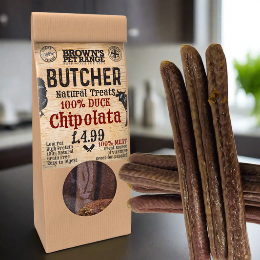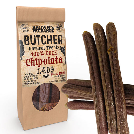 100% Duck Meat Butchers Chipolata Sausages x5 | Brown's Natural Dog Treats