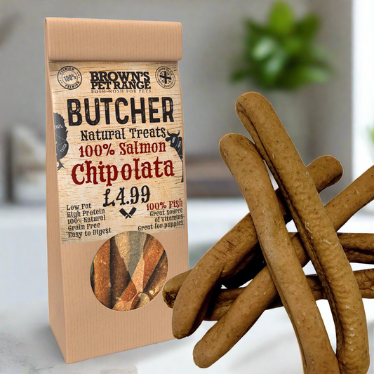 100% Salmon Fish Butchers Chipolata Sausages x5 | Brown's Natural Dog Treats