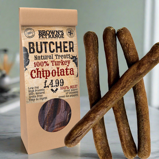 100% Turkey Meat Butchers Chipolata Sausages x5 | Brown's Natural Dog Treats