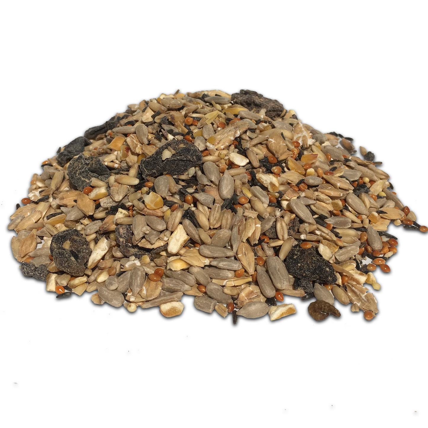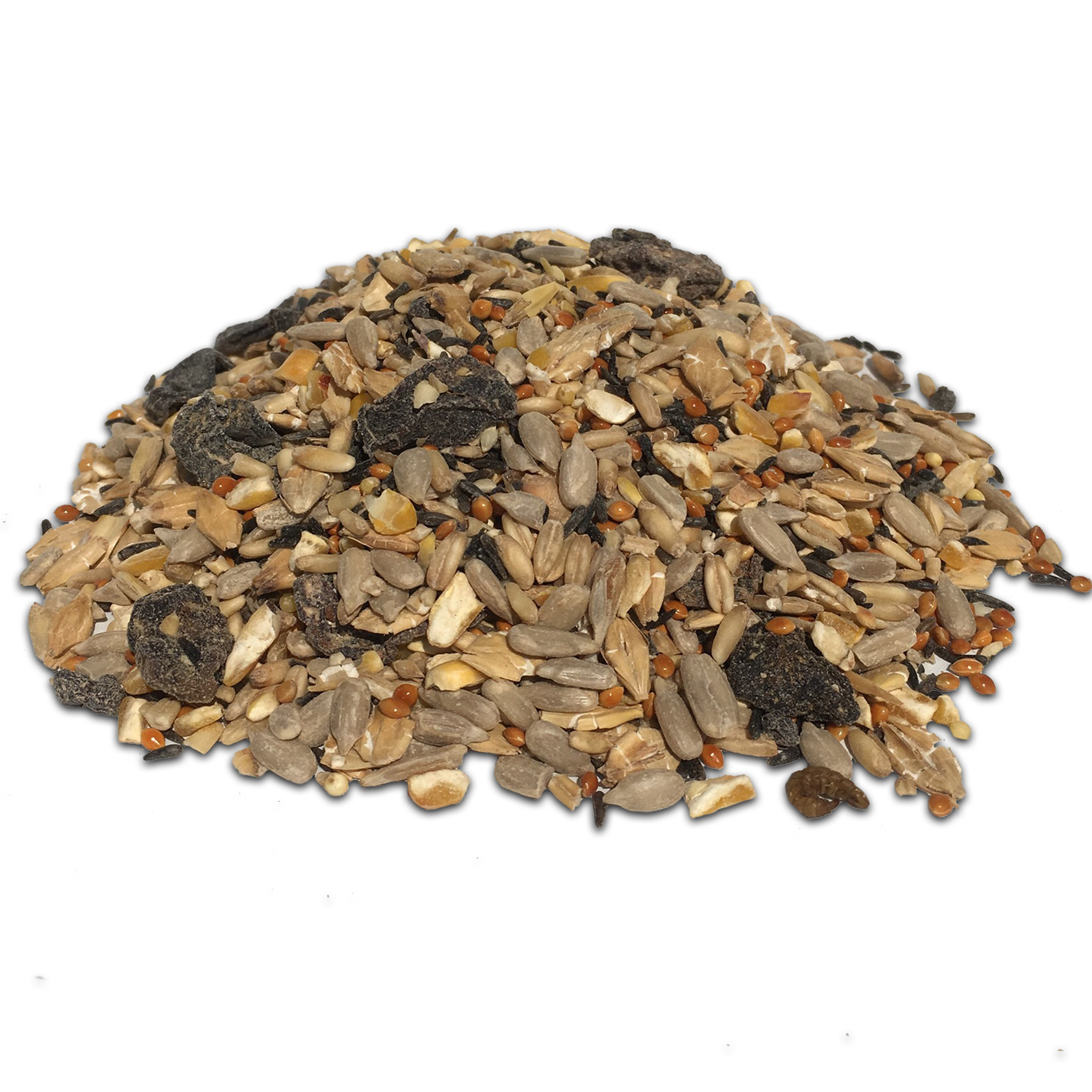 COMPOSITION: RED MILLET, SUNFLOWER KERNELS, FLAKED BARLEY, SULTANAS, CUT MAIZE, NIGER SEED, PINHEAD OATMEAL, ELDERBERRIES, GROATS. (ELDERBERRIES TOXIC FOR BIRDS)