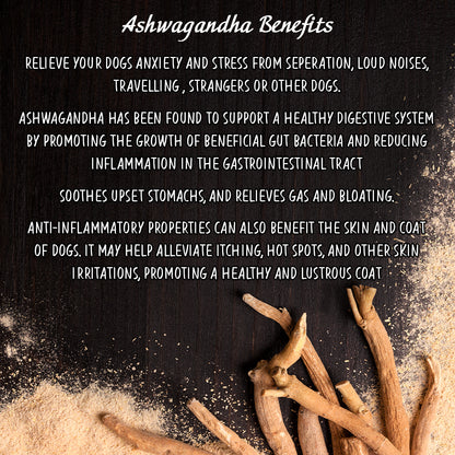 Our Ashwagandha Range is specially formulated to help dogs cope with stress and anxiety. Whether it's separation anxiety, loud noises, or environmental changes, the calming properties of ashwagandha may provide a sense of relaxation and peace for your furry companions.