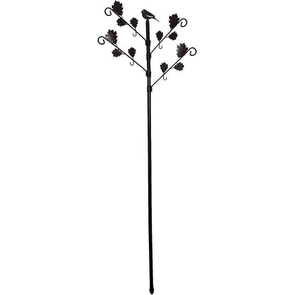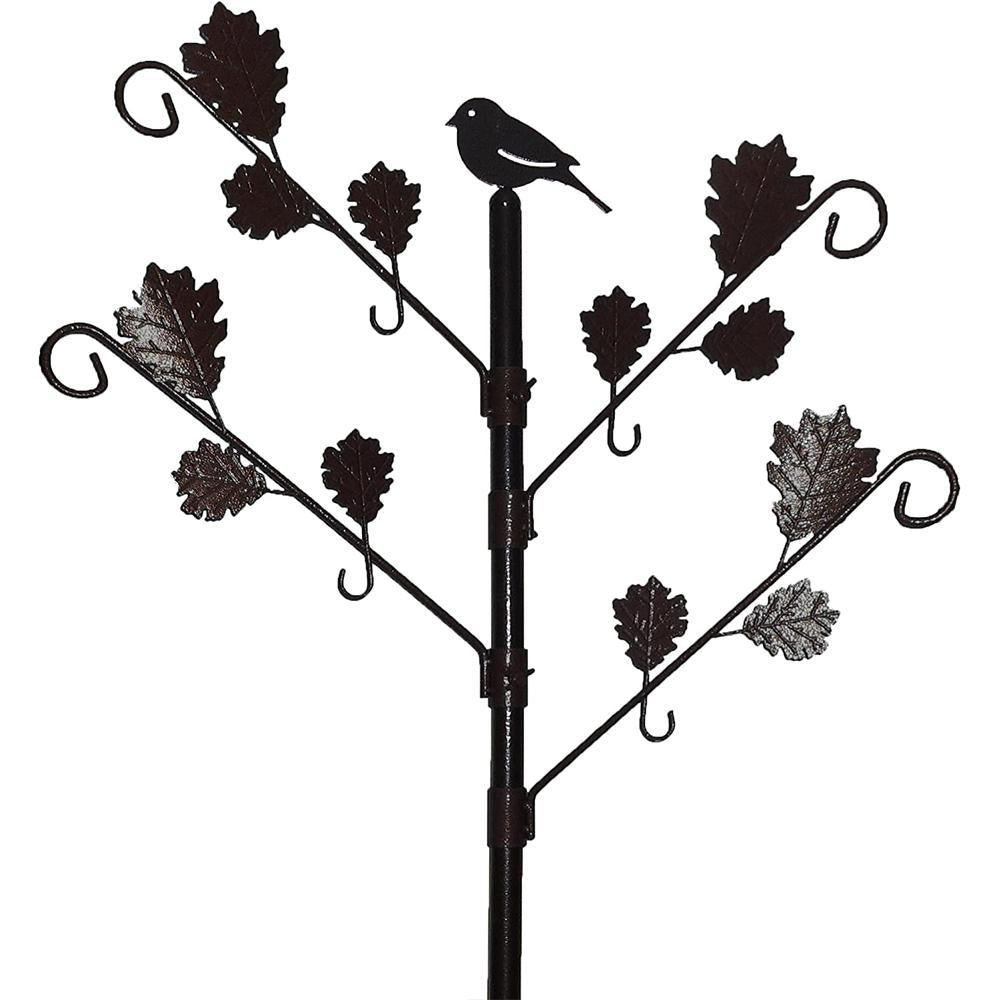 Wild bird feeding station has two hanging points on each of the 4 adjustable branches! New design with leaves and bird finial. Three pole sections with brown hammertone finish. Ideal to encourage wild birds into the garden