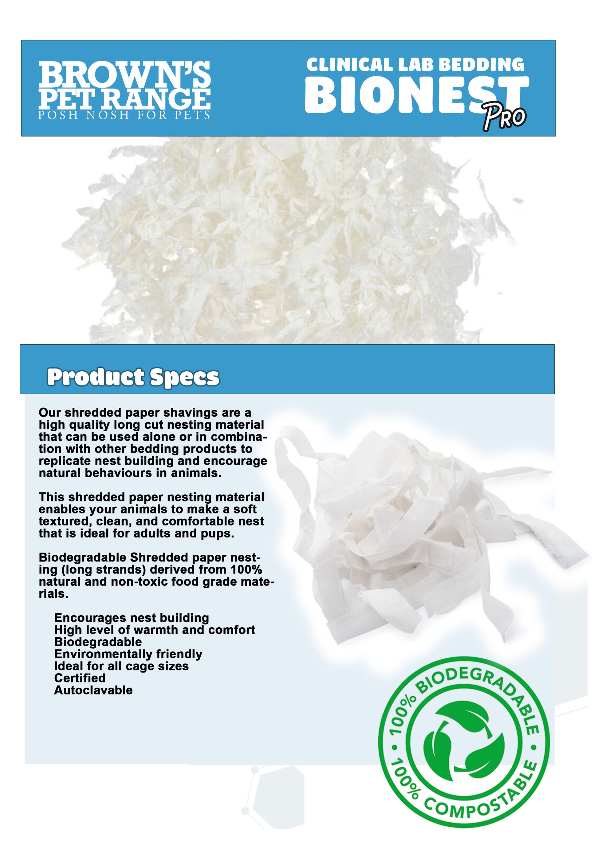 Brown's Small Animal | Clinical Lab Bedding - BioNest Pro