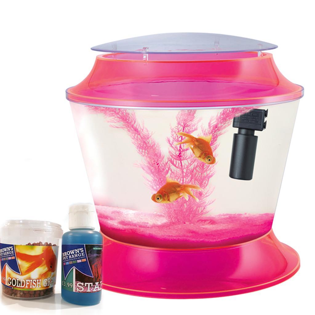 Keep your goldfish happy and entertained with the Goldfish Starter Kit from Fish R Fun. Made form hard-wearing materials this bowl is perfect for those who are beginning to look after fish, or children who want to keep their goldfish or other cold water fish healthy and active. The bowl features a simple, curved design that allows you to see your fish at all times and it holds 17 litres of water and comes with gravel, a filter and a plant! The clear bowl with its solid flat base has an open top with a safety guard, making it easy to fill with decorations to give your fish an even more exciting home.