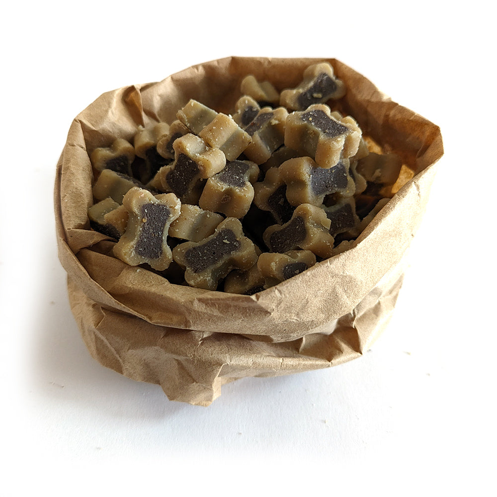 They are available in different shapes, colours and flavours. They can be easily broken by the soft consistency, which means that your dog is not distracted by long chewing, so the training can continue fast after the reward. You can reward your favourite for many reasons because he did not bark or simply because you love him/her.