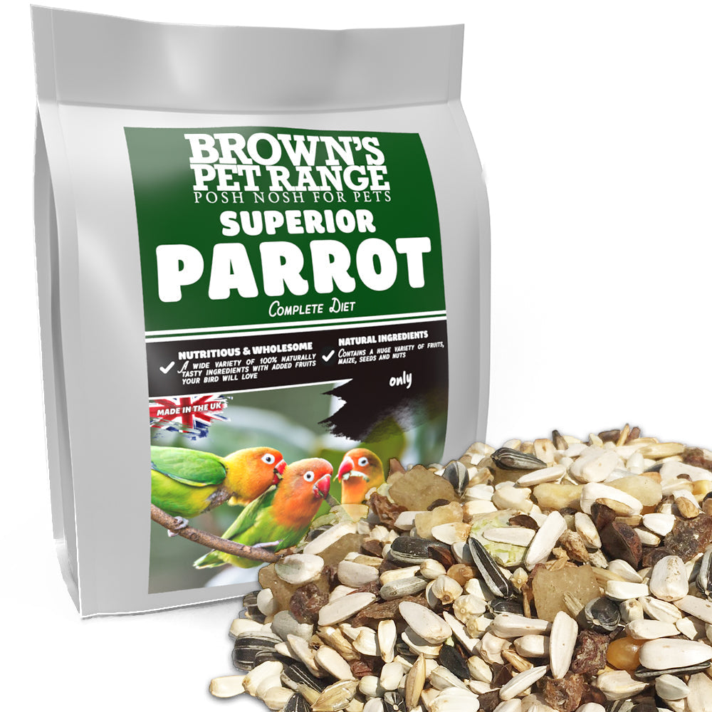 Superior Parrot mix is a complete diet; meaning that it contains all their essential & beneficial vitamins, minerals & nutrients. This diet is also suitable for most parrots.