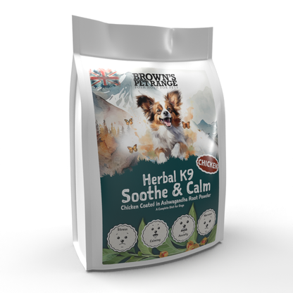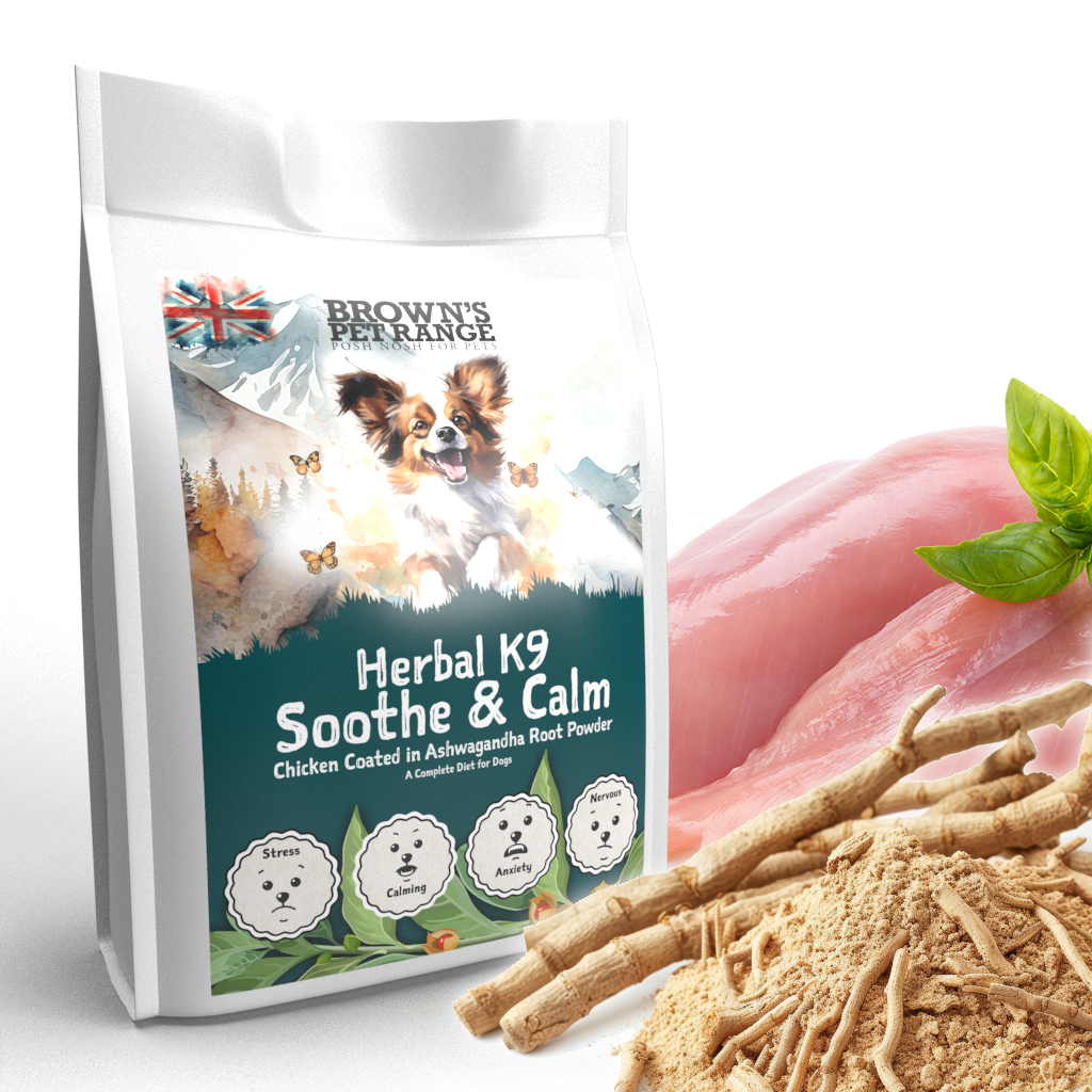 Our Herbal K9 Soothe & Calm is made using Seasoned Chicken with expert craftsmanship, using fresh Ashwagandha Root Powder. Providing an added flavour to the chicken, but also offer several health benefits for your furry friend.